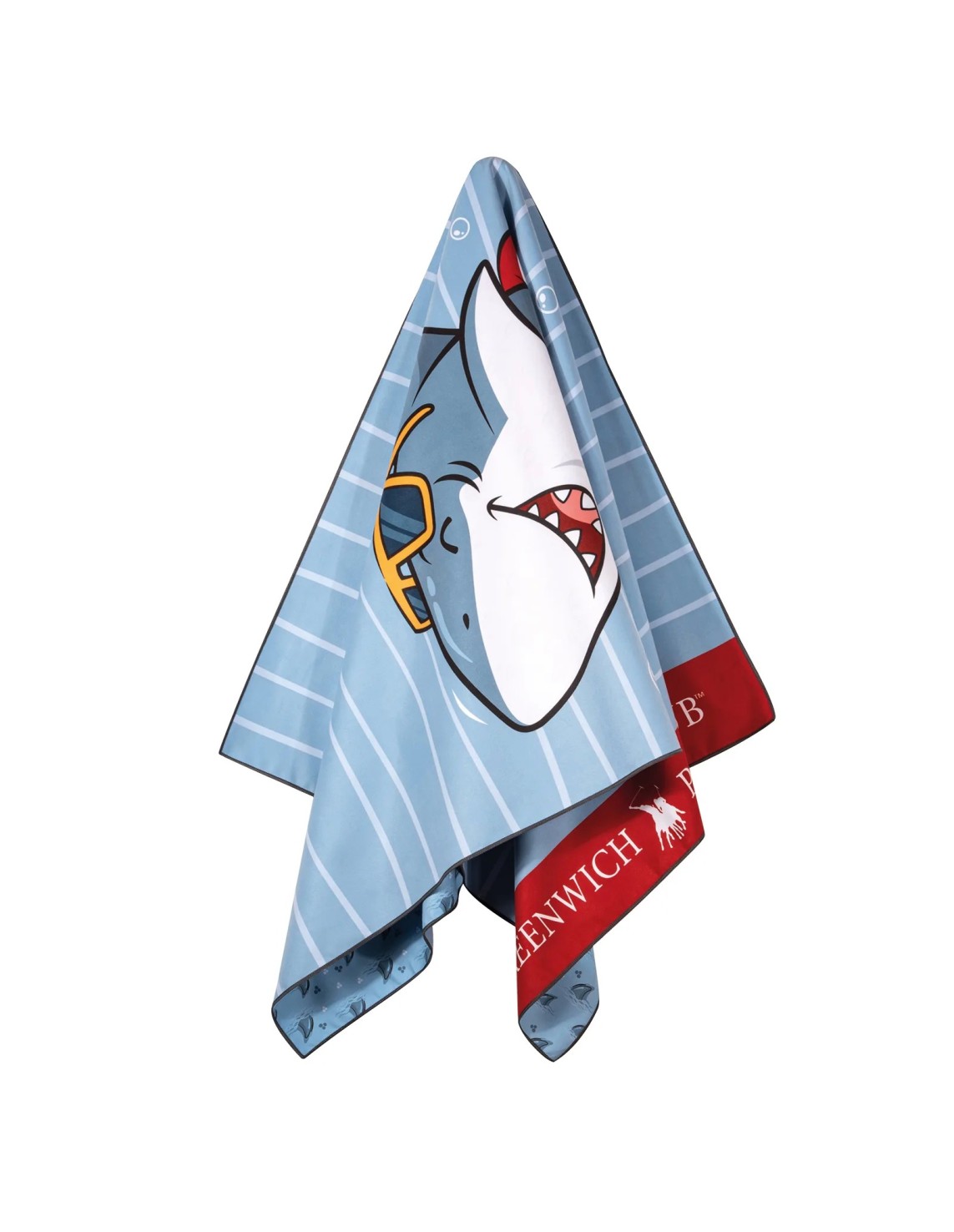 Greenwich Polo Club Junior Serisi’ne ait bu çift taraflı desenli plaj havlusu, %100 mikrofiber kumaştan üretilmiştir.