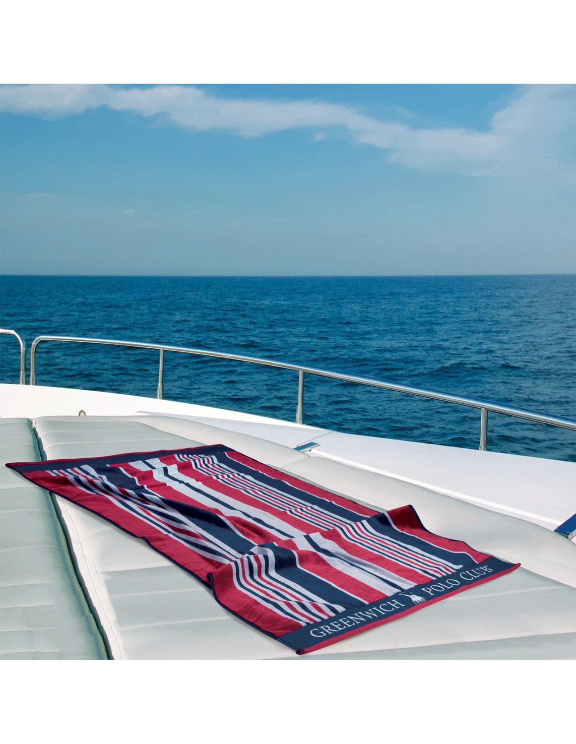 Greenwich Polo Club Plaj Havlusu 3632 – Mavi/Kırmızı/Beyaz, 90x180 cm, %100 Pamuk Jakarlı