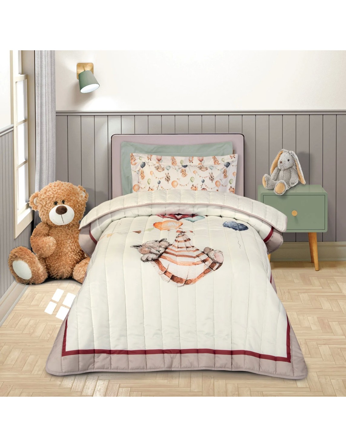 Özellikler: Dijital baskı, iki taraflı kullanım, sıcak tutan ve hafif yapı, hipoalerjenik kumaş.